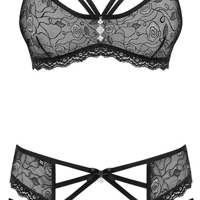 SERAFIA שחורה גרביון שקוף עם סיומת תחרה