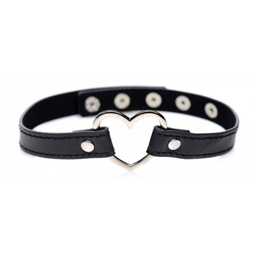 צ'וקר שחור עם לב כסוף במרכז. דרך יצירתית להגיד אני שלך. הקולר ניתן להתאמה וסגירה בהתאם לעובי הצוואר. בד דמוי עור. רוחב הקולר 2 ס"מ. מושלם למשחקי שליטה.