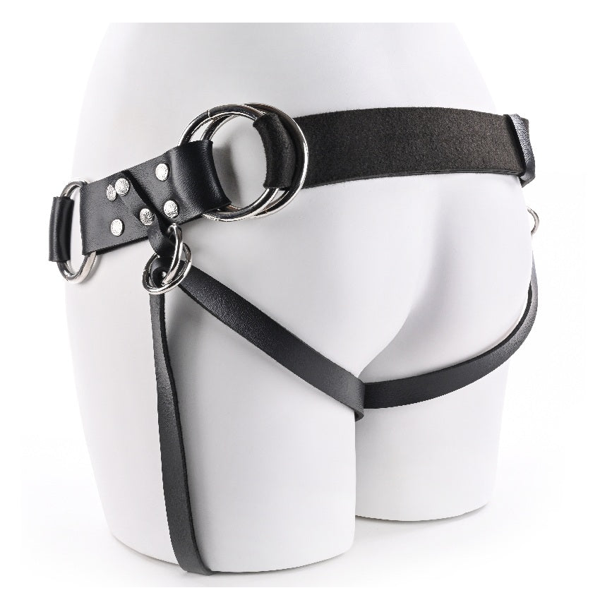 תוכלי להתאים את גודל הרצועות סביב האגן והירכיים למבנה גופך. טבעת ה O המתכתית ניתנת להחלפה בכל טבעת שתרצי, להתאמה מרבית לגודל הדילדו שיש לך.