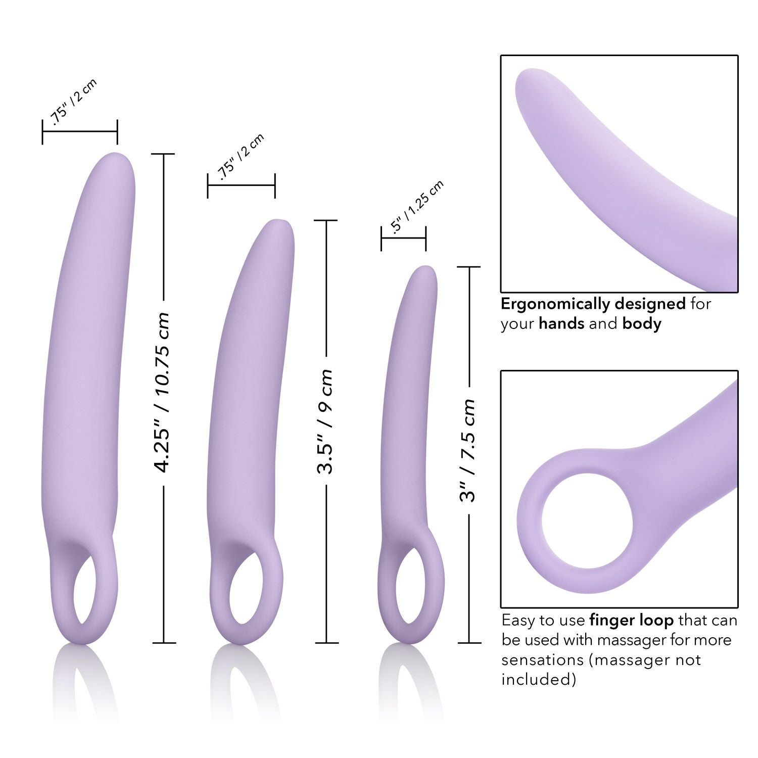 שלישיית מאמני נרתיק דגם אלנה. עשויים מסיליקון איכותי, היפואלרגני. נעימים למגע ובטוחים לשימוש. ידית אחיזה נהדרת, חדירה מדורגת וחלקה.
