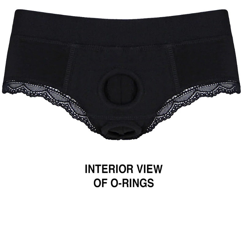 רתמת תחתון חדשה של רודיאו, עם הנוחות המירבית שניתן להשיג ברתמה ואיכות ללא פשרות. בד כפול, תפרים כפולים ורצועת גומי עבה ואיתנה לאחיזה סביב המותן. לצד היציבות הרתמה ניחנת בעיצוב נשי עם גימור תחרה יפייפה. מצוידת ב 2 טבעות רינג המאפשרות שימוש ב 2 דילדואים במקביל או בדילדו כפול כדוגמת נקסוס או נקסוס ג'וניור.