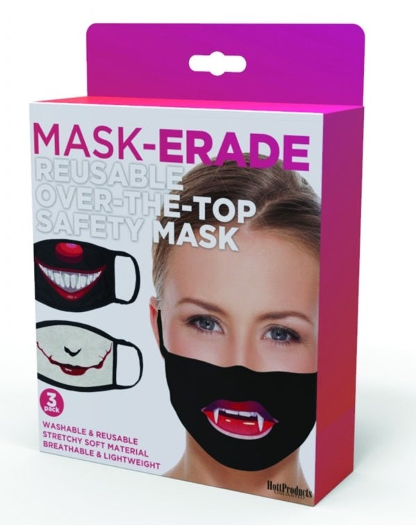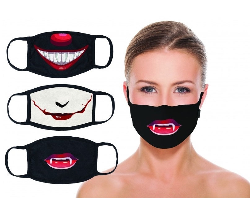 סט 3 מסיכות לאף והפה מבד נושם, כביס, רב שימושי. בסגנון ערפד/ית, ליצן/ית רוצח/ת, זומבי/ת.