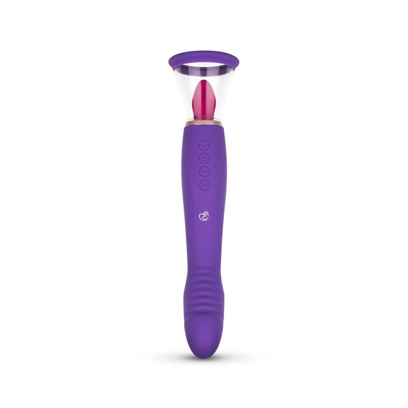 בצידו השני ממתינה לך לשון שובבה מסיליקון הרוטטת ונעה מעלה מטה ב - 7 מצבים לבחירתך. בנוסף, תוכלי ליהנות מיניקה אמיתית ע"י 2 כוסיות מיוחדות ליצירת ואקום; אחת מיועדת ליצירת ואקום לפות והשנייה לחזה בשילוב פעולת הלשון המלקקת ורוטטת.