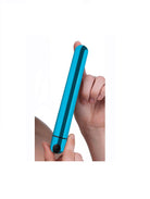 מכשיר רטט בעיצוב אלגנטי בצבע כחול מטאלי, המשלב עוצמה עם נוחות שימוש וגודל קומפקטי.
