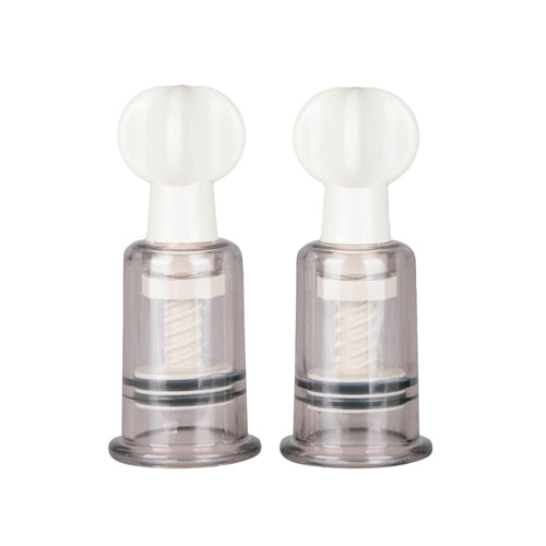2 משאבות להגדלת הפטמות או הדגדגן. בטוחות ונוחות לשימוש, גודל גדול (קוטר 4 ס"מ). פעולת צילינדר ע"י סיבוב, תוציא את האויר ותיצור ואקום הדרגתי בהתאם לרצונך. מבחנות שקופות דרכן ניתן לראות הכל.