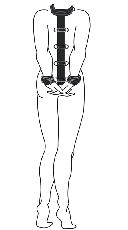 סט רתמת ריסון הכוללת קולר דמוי עור הניתן להתאמה ע"י אבזם מצויד בשתי טבעות לאיזוק לשרשרת (איננה כלולה), זוג אזיקים עבים איכותיים דמוי עור עם אבזמים להתאמה מירבית, רתמה עם 9 טבעות D לאורכה לאיזוק וריסון בגובה הרצוי. זוג שקלים / קליפסים לחיבור וניתוק מהיר.